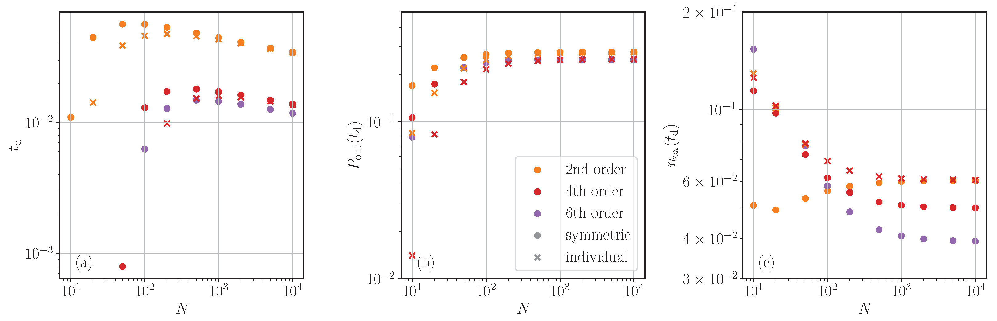 Figure 4 on the left, we plot the relative deviation of the predicted time of maximum emission from the exact value. It appears promising that already the second order cumulant expansion yields results accurate to better than 5%, which somewhat slowly improves with emitter number. The fourth order is more accurate and converges towards a 1% error for large ensembles. Again, the individual operator-based expansions behave consistently superior, particularly for smaller