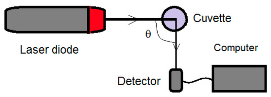 The laser beam’s diameter was 0.5 mm, which is bigger than the diameter of the He-Ne laser beam but is in line with designing a simplified procedure for assessing the diameter of the particles in suspension. This width of the beam introduced an error in assessing the maximum particle diameter dmax as described by Equation (8).