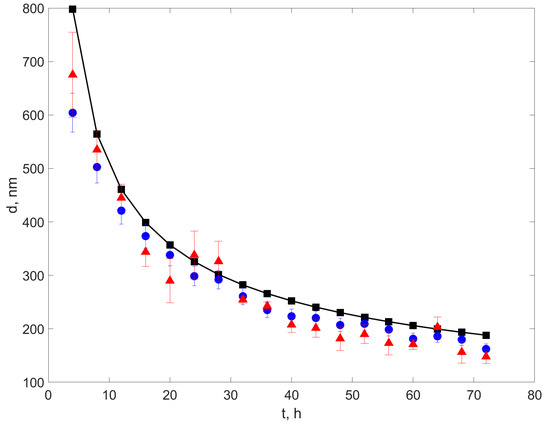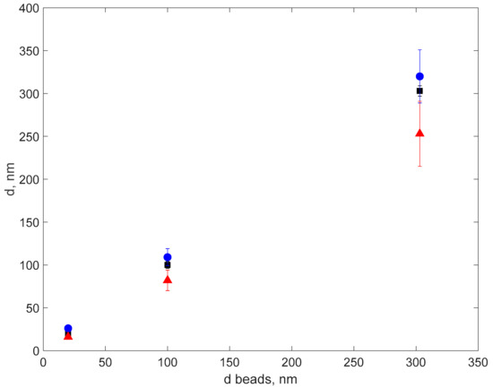 Data in Table 1 is also illustrated in Figure 9. The DLS errors were calculated following the procedure described in the annex of [39] and are 9%; therefore, the error bars of the DLS diameters were 9% of the measured data.