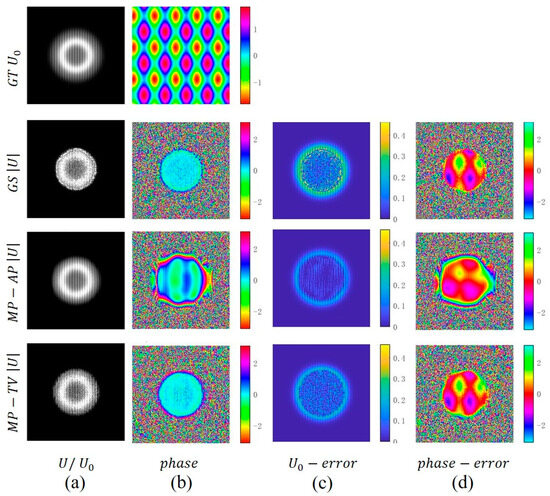 - Migukin, A. Wave Field Reconstruction from Multiple Plane Intensity-Only Measurements. J. Opt. Soc. Am. A 2011, 28, 993–1002. [Google Scholar] [CrossRef]