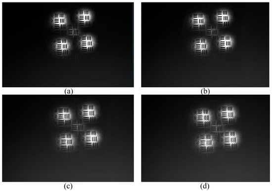 To achieve high spatio-temporal resolution 3D reconstruction, we set multiple defocus positions in front of and behind the object plane during the experiment, pro-gressively acquiring defocus holograms. Using a precision displacement stage to con-trol the distance between the CCD and the sample, we recorded continuous defocus patterns at 100 μm increments, capturing multi-plane intensity distributions spanning from the focal point to the far-focus position. The acquisition of defocused holograms essentially captures angular spectra of the object field at varying propagation distances, providing redundant information essential for phase recovery. As shown in Figure 6, typical defocused holograms exhibit distinct interference fringe structures, with fringe spacing progressively decreasing as defocus increases. These interference fringes con-tain phase-modulated information of the object’s complex amplitude, providing foun-dational data for subsequent phase recovery and 3D reconstruction. Prior to formal re-construction, all images undergo preprocessing operations such as flat-field correction and background removal to eliminate detector response inhomogeneities and external optical noise, ensuring the accuracy and consistency of holographic data. The figure displays four representative defocused holograms. As the defocus distance increases from near to far, the fringes become progressively denser and the interference contrast gradually intensifies. This clearly reveals the spatial frequency evolution pattern in-duced by defocusing, which directly reflects the phase modulation characteristics of the object-image wavefront.