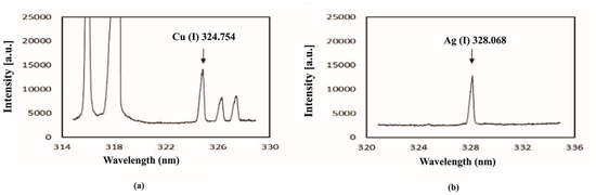 LIBS emission lines evaluated from root cross parts of Vicia faba: (a) grown in a solution containing 10 μmol L−1 Cu2+, (b) grown in a solution containing 10 μmol L−1 Ag+. Reproduced from Ref. [131] with permission of Elsevier.