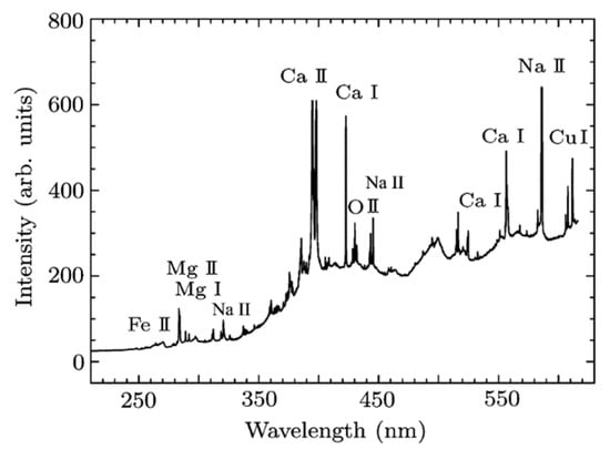 LIBS time-integrated spectral emission of sophora leaves obtained using femtosecond irradiation. Reproduced from Ref. [49] with permission of IOP.