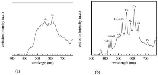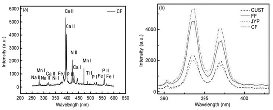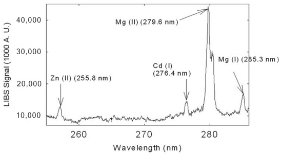 Another study using LIBS on plants was conducted by Bossu et al. [49]. As shown in Figure 11, they used fs-LIBS to detect trace metal elements in Sophora leaves.