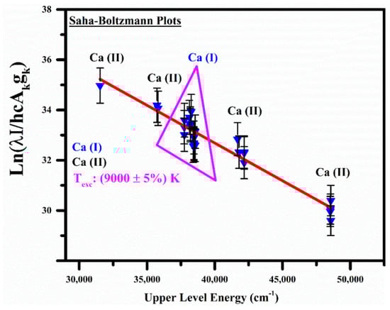 - Safi, A.; Tavassoli, S.H.; Cristoforetti, G.; Legnaioli, S.; Palleschi, V.; Rezaei, F.; Tognoni, E. Determination of Excitation Temperature in Laser-Induced Plasmas Using Columnar Density Saha-Boltzmann Plot. J. Adv. Res. 2019, 18, 1–7. [Google Scholar] [CrossRef]