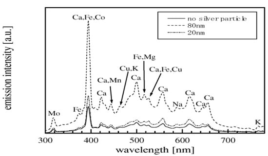 - Ohta, T.; Ito, M.; Kotani, T.; Hattori, T. Emission Enhancement of Laser-Induced Breakdown Spectroscopy by Localized Surface Plasmon Resonance for Analyzing Plant Nutrients. Appl. Spectrosc. 2009, 63, 555–558. [Google Scholar] [CrossRef]