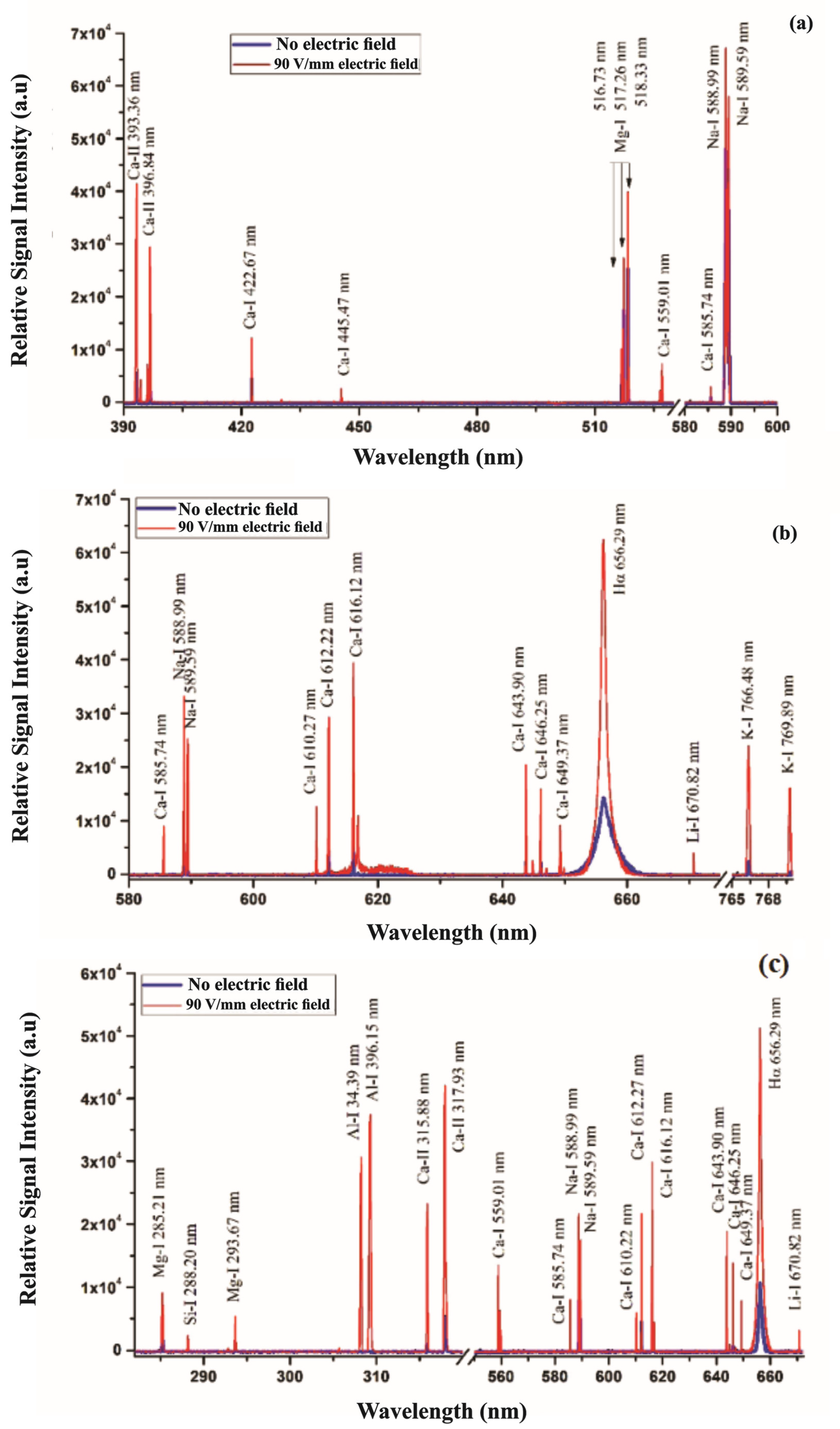 | 2019 | Lactuca sativa part of leaves and stem Allium schoenoprasum part of leaves | P, Cl, Cd | NELIBS: Nd:YAG (1064 nm), 160 mJ per pulse, Ag nanoparticle diameter 80 nm | Ag nanoparticle | dried leaves, fixed to a glass slide with double-sided adhesive tape | [128] |
