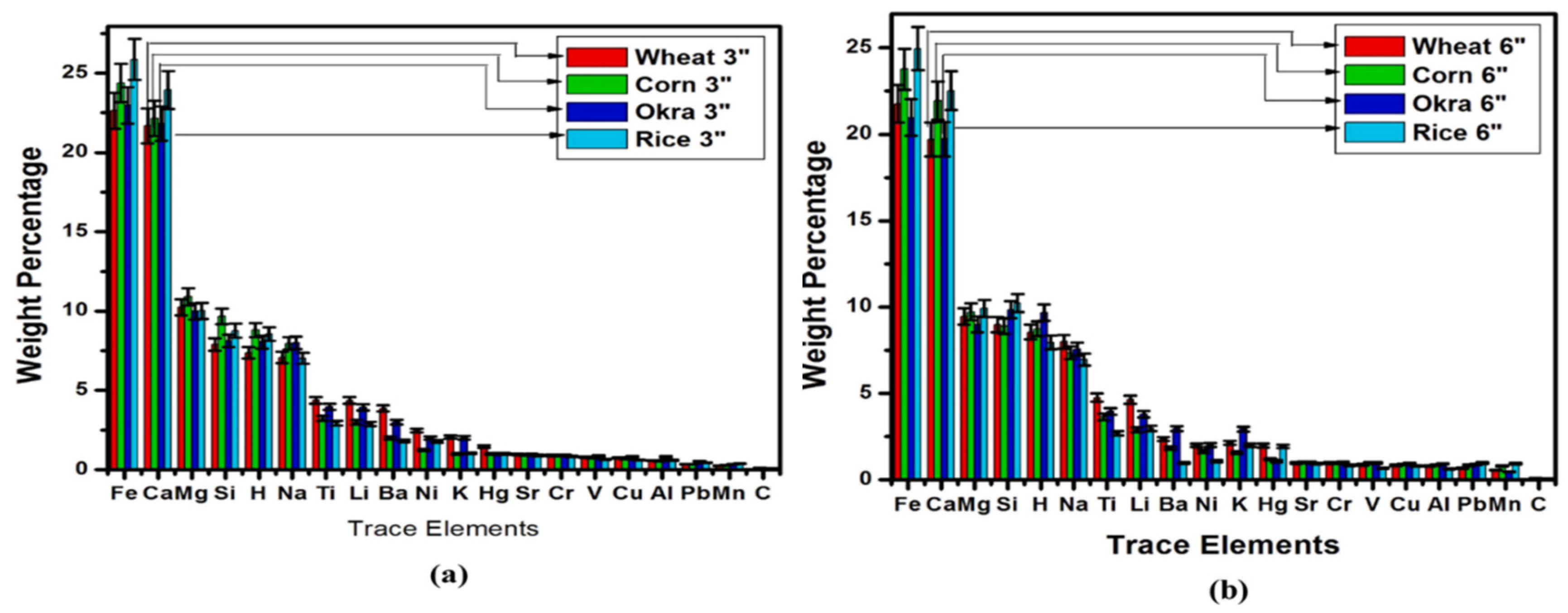 | Chickpea | Si, Mg, Ti, Fe, Ca, C, Al | [157] |