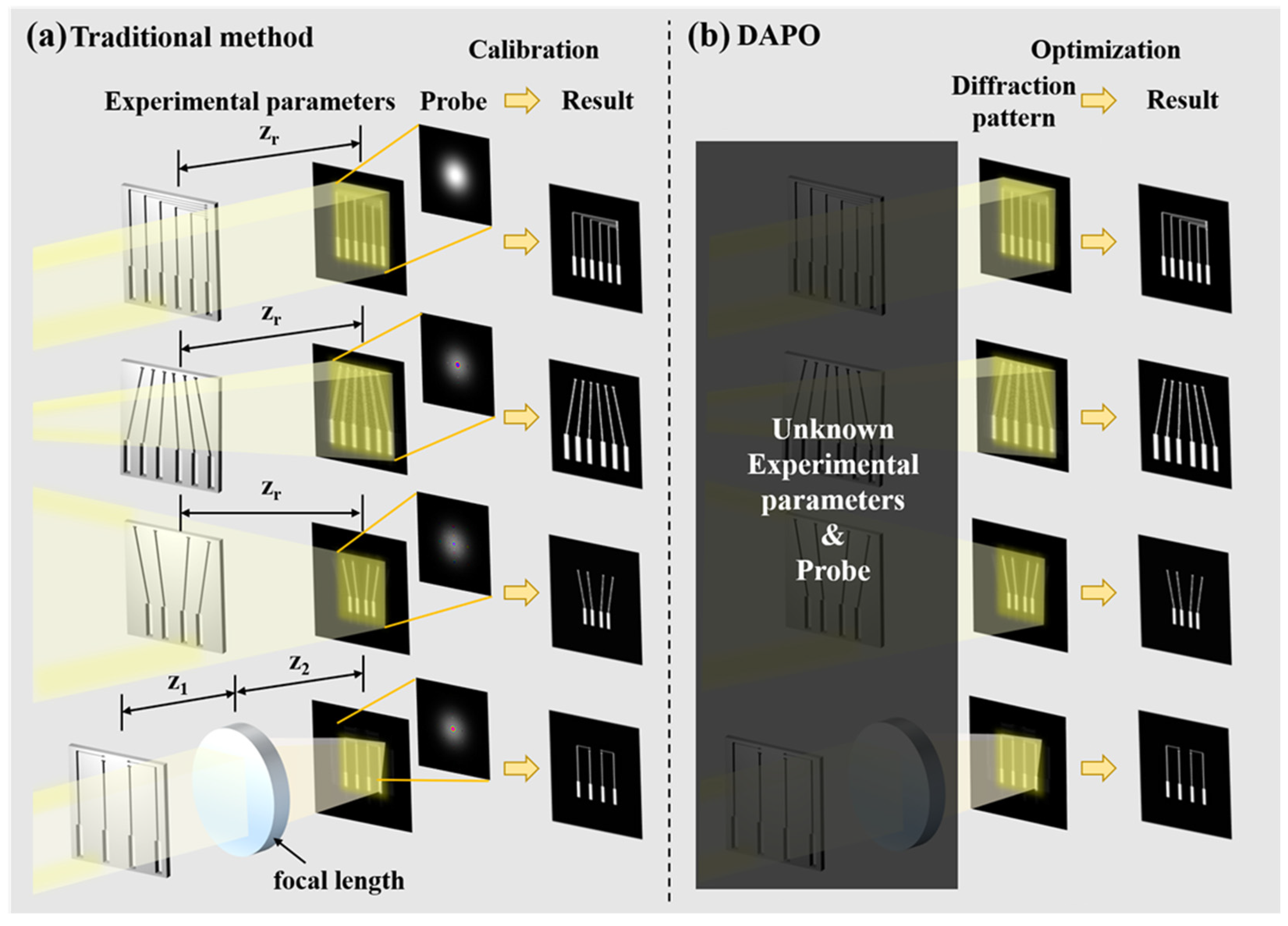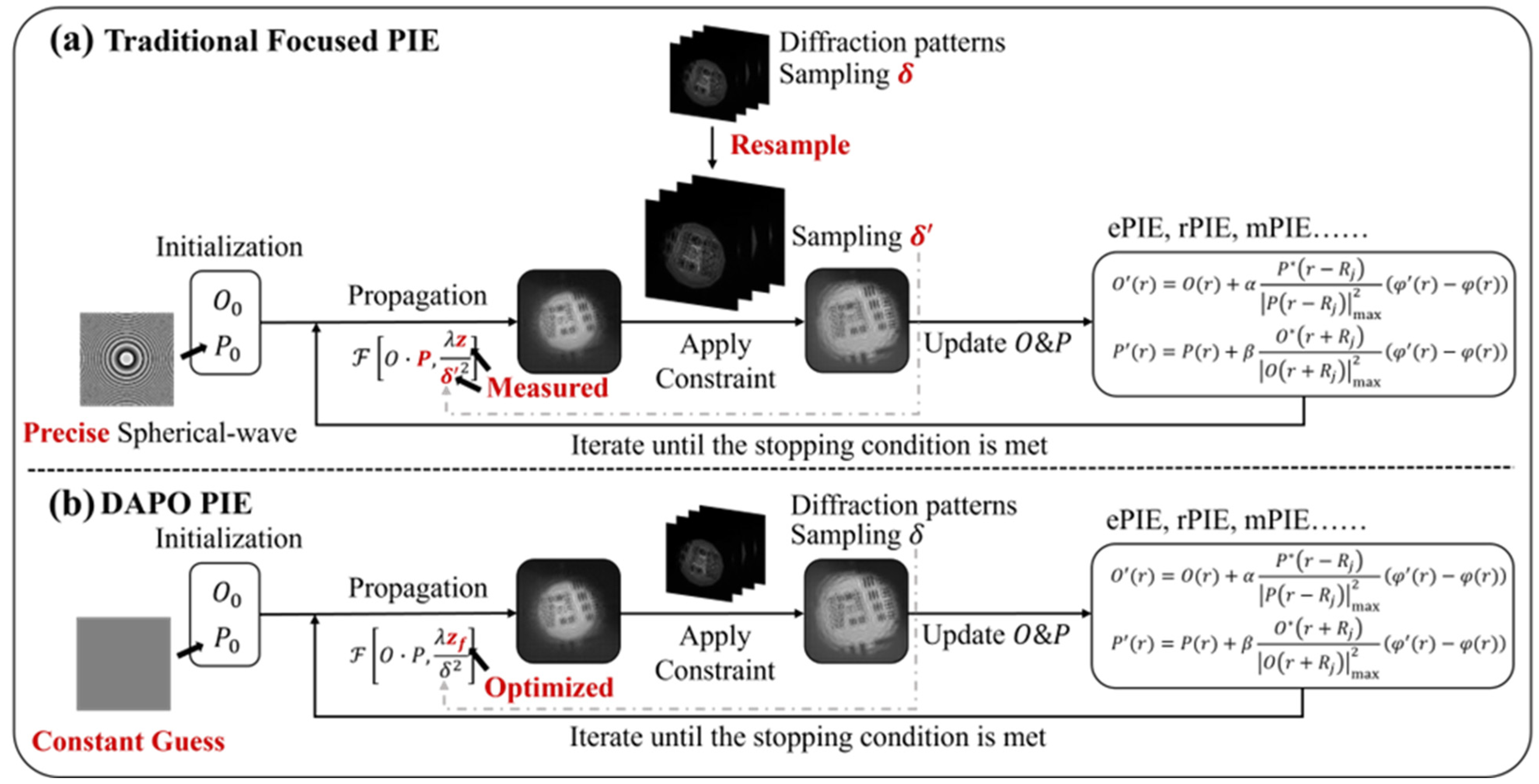 - Gao, F.; Veetil, S.P.; He, X.; Sun, A.; Jiang, Z.; Kong, Y.; Liu, C. Mitigating reconstruction errors in extended-ptychography with adaptive scanning position correction. Appl. Opt. 2025, 64, 773–781. [Google Scholar] [CrossRef]