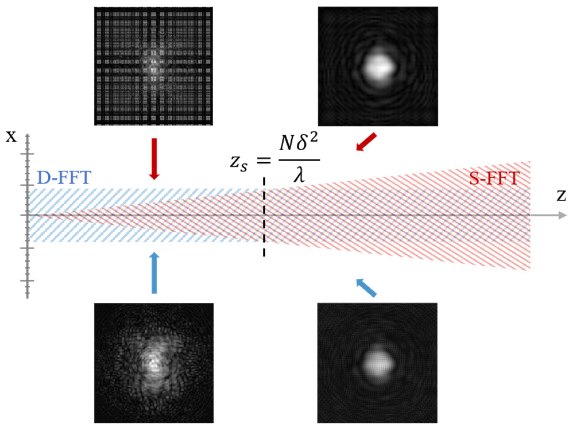 - Mendlovic, D.; Zalevsky, Z.; Konforti, N. Computation considerations and fast algorithms for calculating the diffraction integral. J. Mod. Opt. 1997, 44, 407–414. [Google Scholar] [CrossRef]