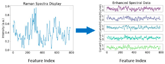 The FID score of 9.37 between the generated data and the original data indicates that the generated data is highly similar to the original, also reflecting the high quality of the synthetic spectra. This score suggests that the model has successfully captured the underlying distribution of the original data, making the generated spectra highly realistic. By generating synthetic data that reflects the characteristics of the original data, CGAN helps to expand the dataset, providing more examples for training downstream models, such as classifiers or detectors. In this study, we augmented the original dataset of 414 Raman spectra by generating 1656 additional synthetic samples through a well-trained CGAN model. This resulted in an augmented dataset containing 2070 spectral data points, which is better suited for classification tasks and improves model generalization. The generated data preserves the fundamental characteristics of the original Raman spectra while introducing diversity. By conditioning on various attributes during generation, CGAN ensures that the synthetic data maintains the structural integrity of the original dataset while diversifying the sample space. This approach not only mitigates the problem of data scarcity but also ensures that the generated data can be effectively used for training classifiers.