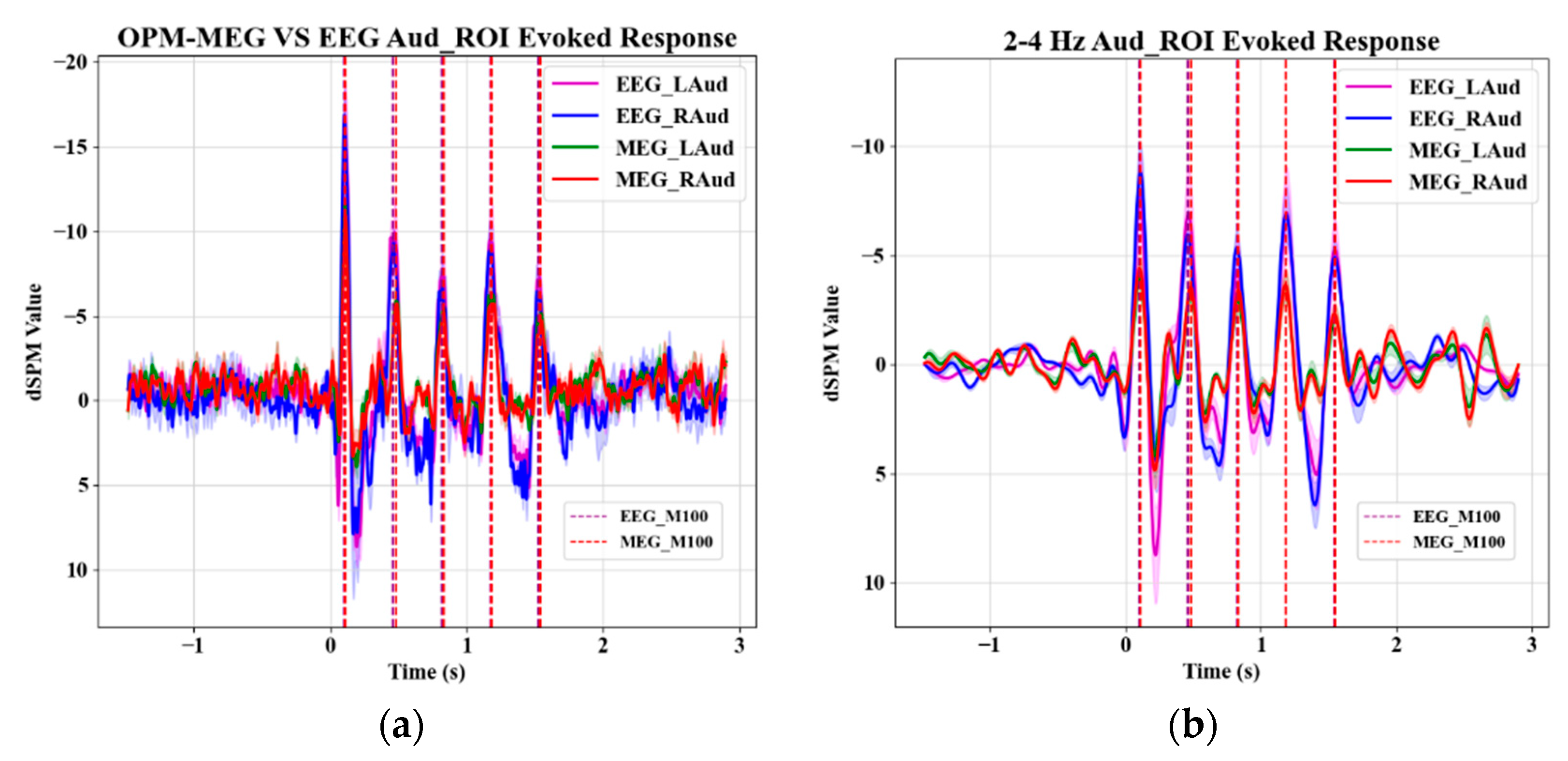 3.1. Results of the Source-Level Evoked Responses Analysis