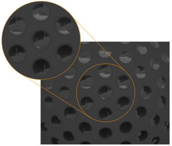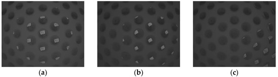 To validate the multi-channel cooperative detection capability and FOV coverage effectiveness of the compound-eye system, a black-and-white checkerboard is used as the target. The target is placed along the system’s optical axis (0°) and at off-axis angles of 10° and 30° for imaging, and the results are shown in Figure 22. As observed, when the target is positioned at 0°, imaging is primarily achieved clearly by the central sub-aperture channels. When the target is shifted to 10° and 30°, the images are captured by the edge sub-aperture channels corresponding to the respective FOV directions. This result visually demonstrates that targets at different spatial orientations are responded to by different channels, confirming the system’s multi-aperture cooperative detection mechanism and effective large FOV coverage. This provides a foundation for subsequent multi-channel image fusion and target localization.