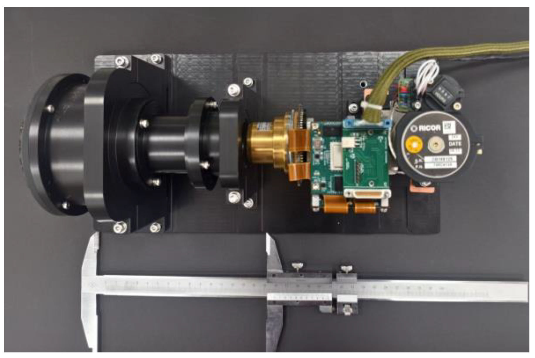 13]. Although the prototype’s imaging results effectively verify the correctness of the optical theoretical model, the bulky volume of the relay imaging system limits its application on platforms with constrained space payloads, such as micro unmanned aerial vehicles (UAVs) and vehicle-mounted auxiliary detection equipment. In contrast, this study has achieved significant breakthroughs in both system compactness and imaging performance: the finally implemented compound-eye imaging system achieves a compact optical volume of less than ϕ110 mm × 195 mm, featuring the advantage of miniaturization. Meanwhile, it has a large sub-aperture, a large relative aperture, and a large detector target size, all of which contribute to the enhanced spatial resolution and detection performance of the system.