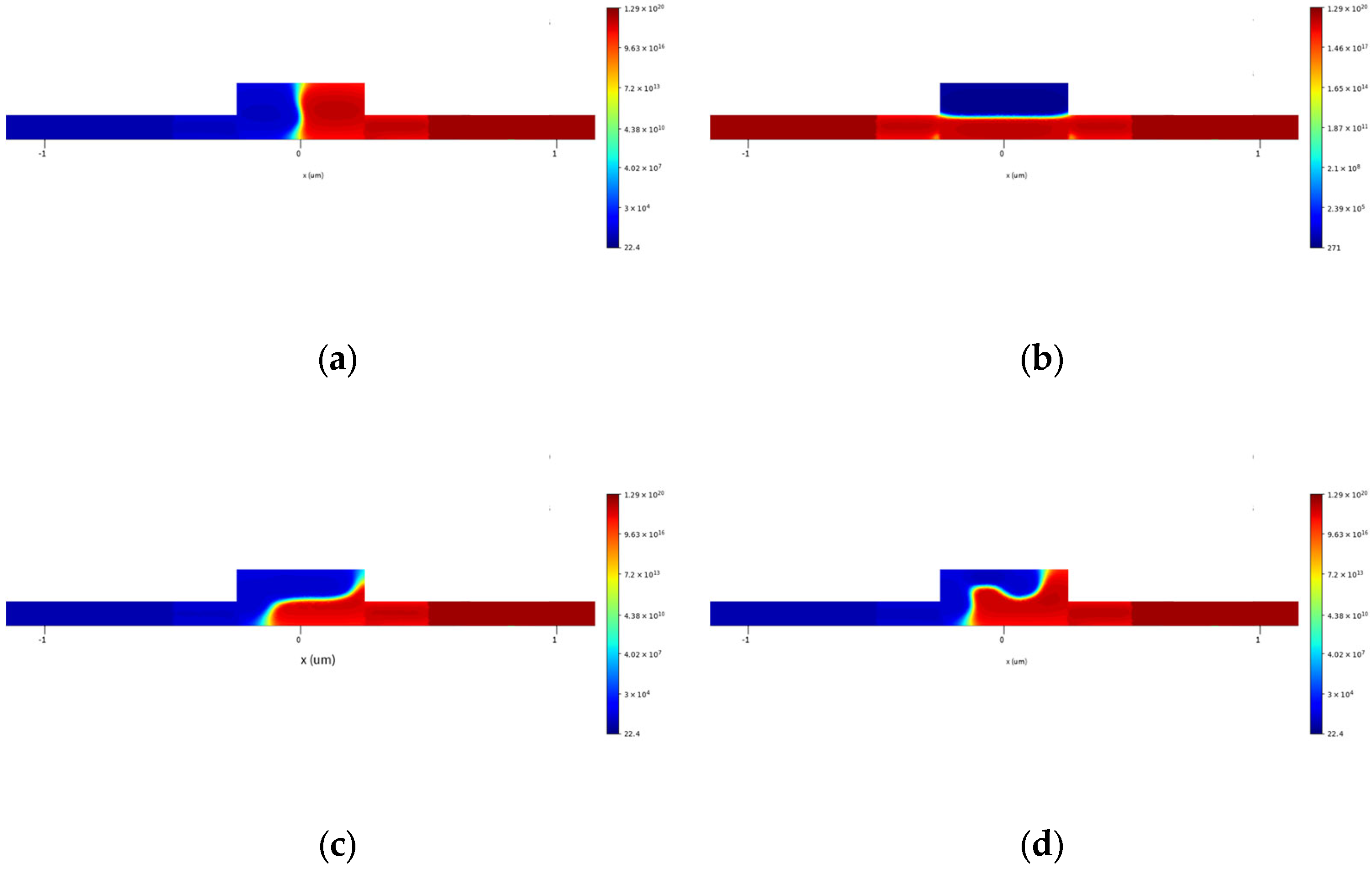 - Plummer, J.D.; Deal, M.D.; Griffin, P.B. Silicon VLSI Technology: Fundamentals, Practice, and Modeling; Prentice Hall Electronics and VLSI Series; Prentice Hall: Upper Saddle River, NJ, USA, 2000. [Google Scholar]