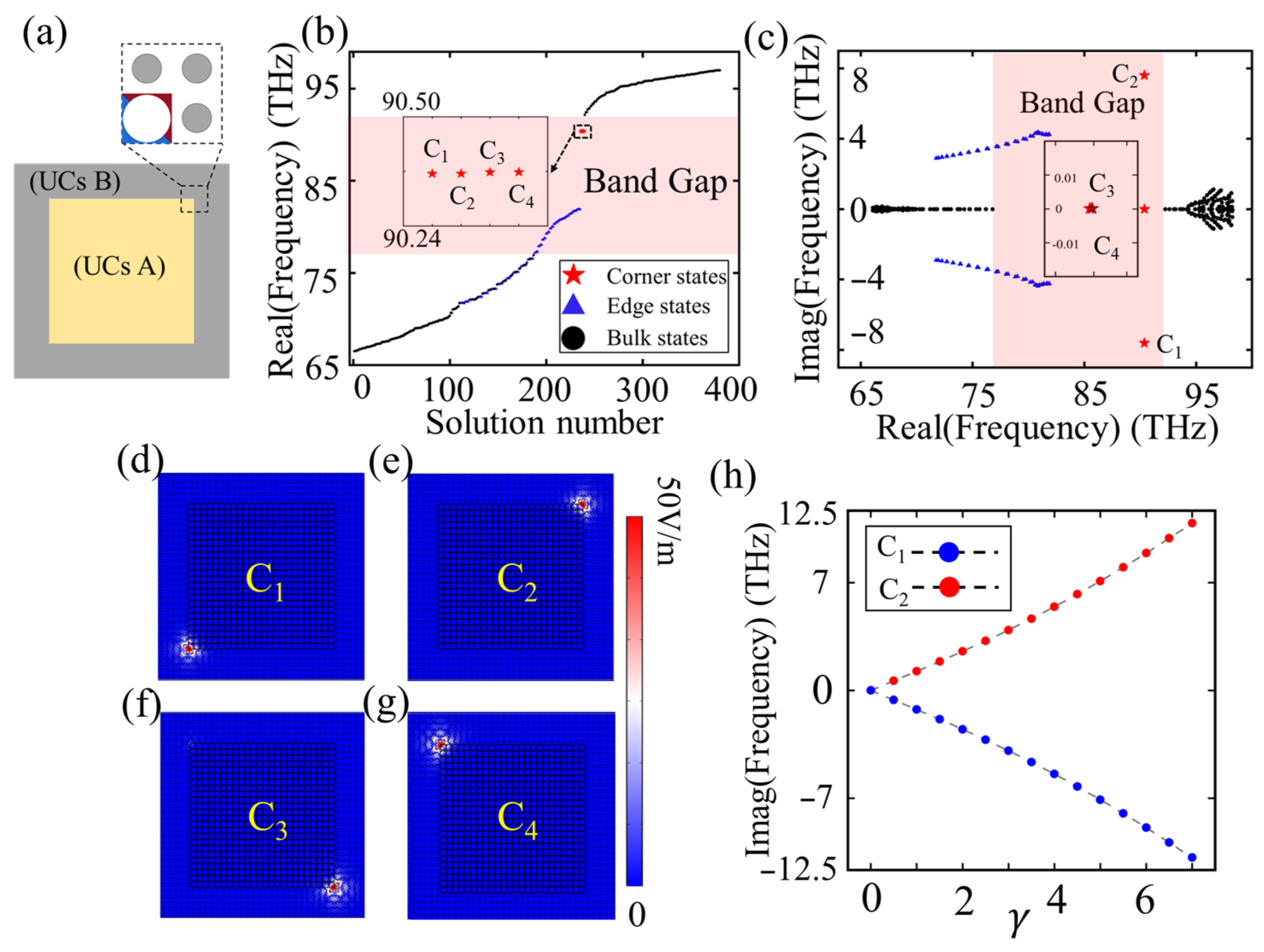 - Zhu, W.; Gong, J. Photonic corner skin modes in non-Hermitian photonic crystals. Phys. Rev. B 2023, 108, 035406. [Google Scholar] [CrossRef]