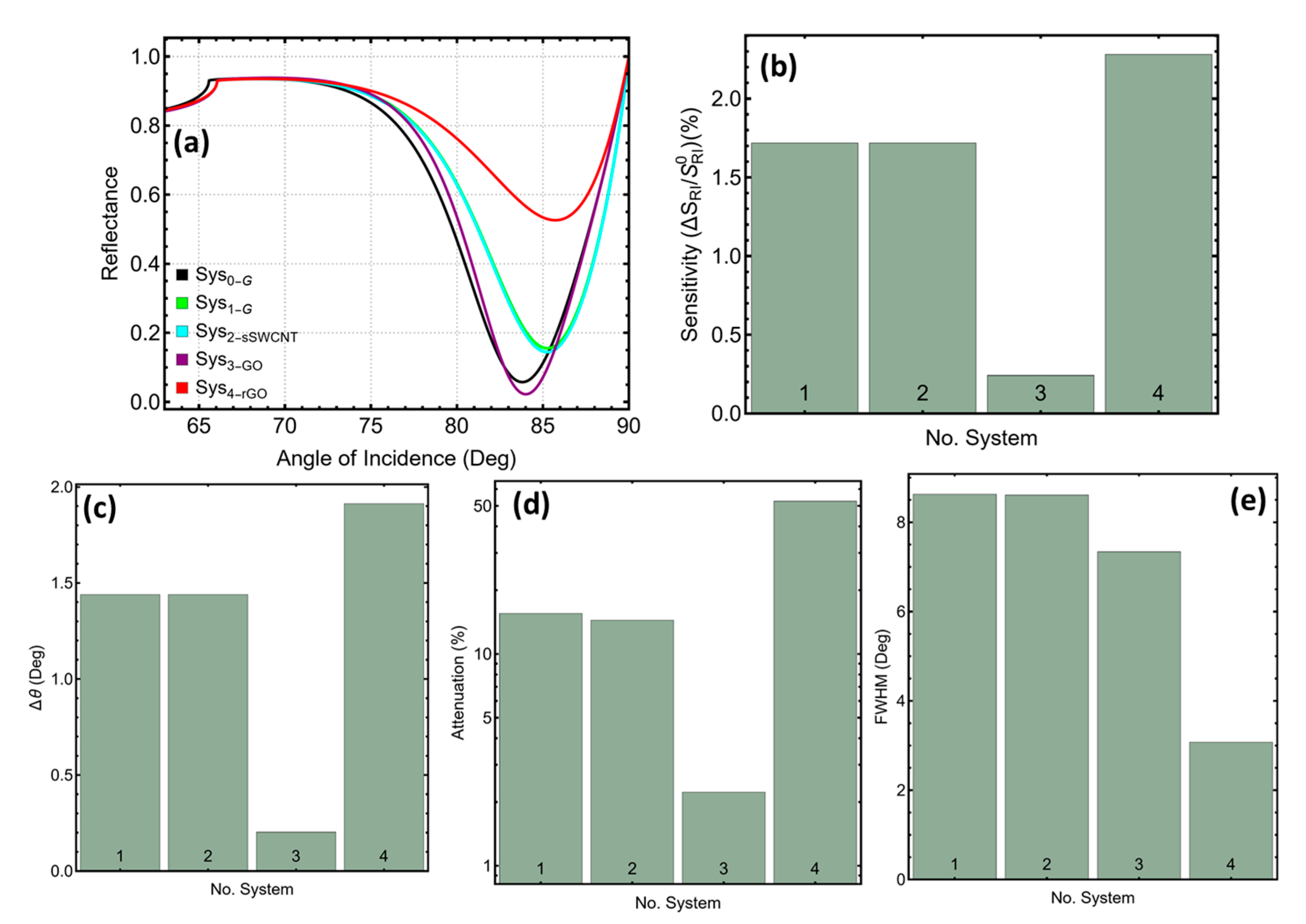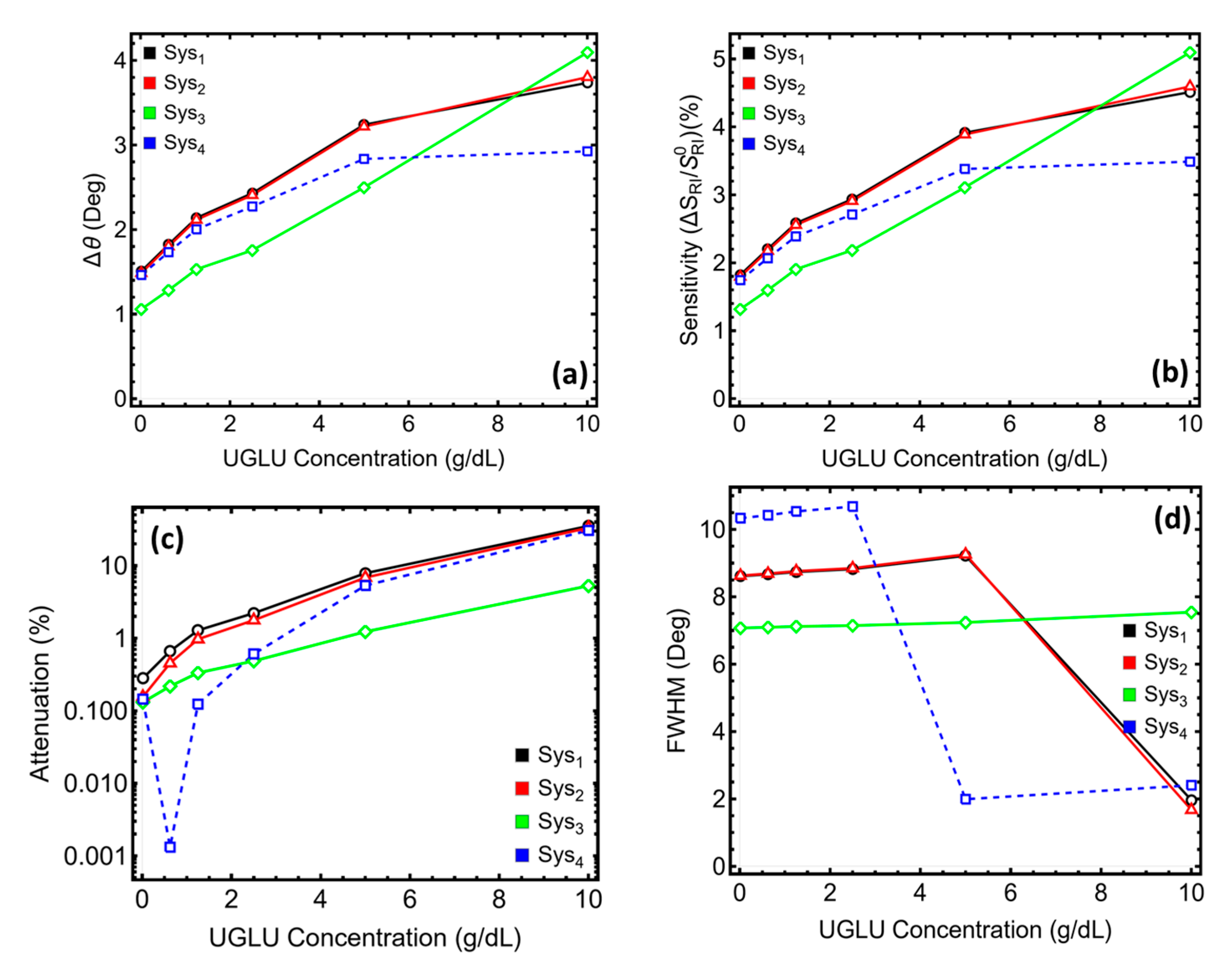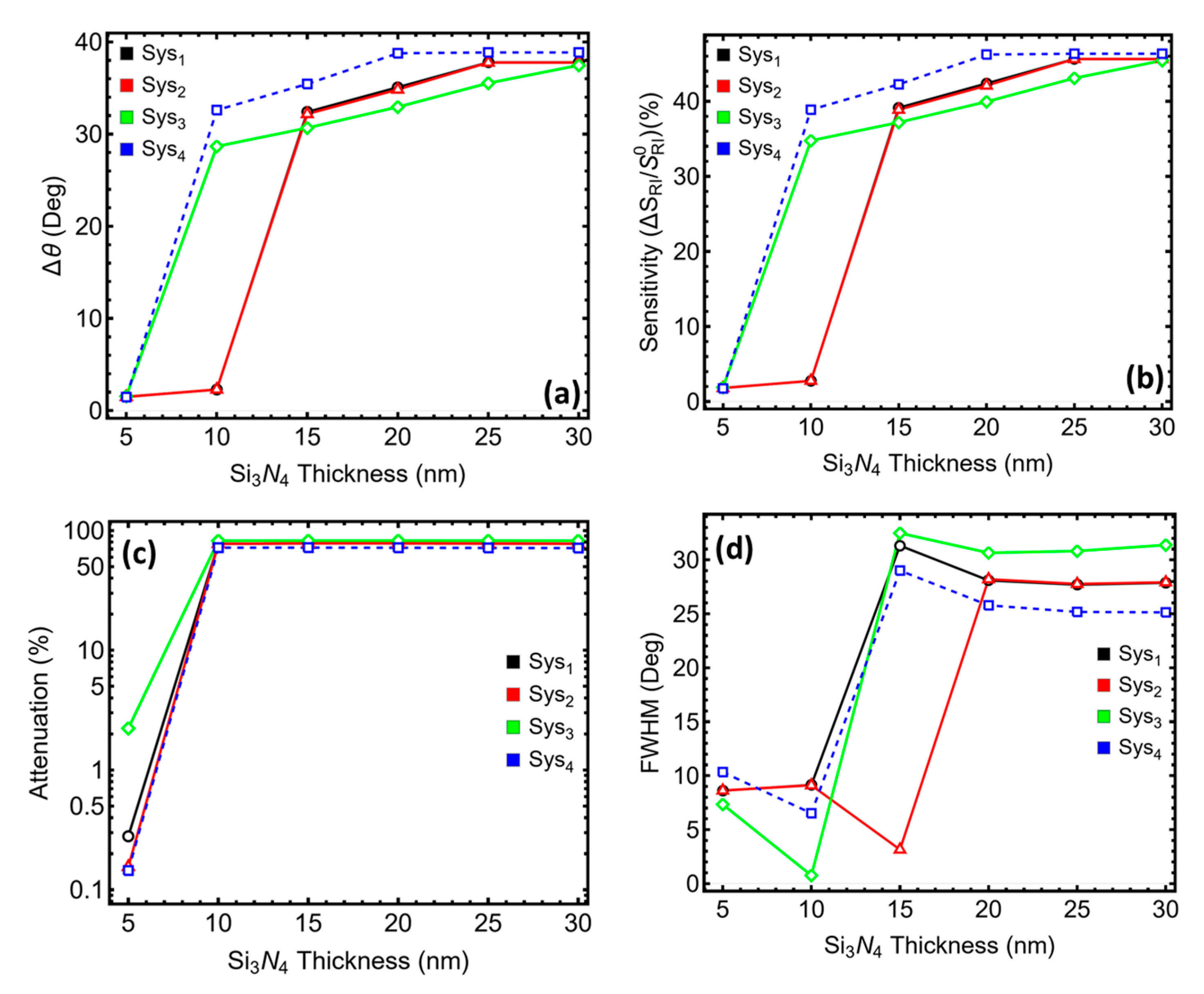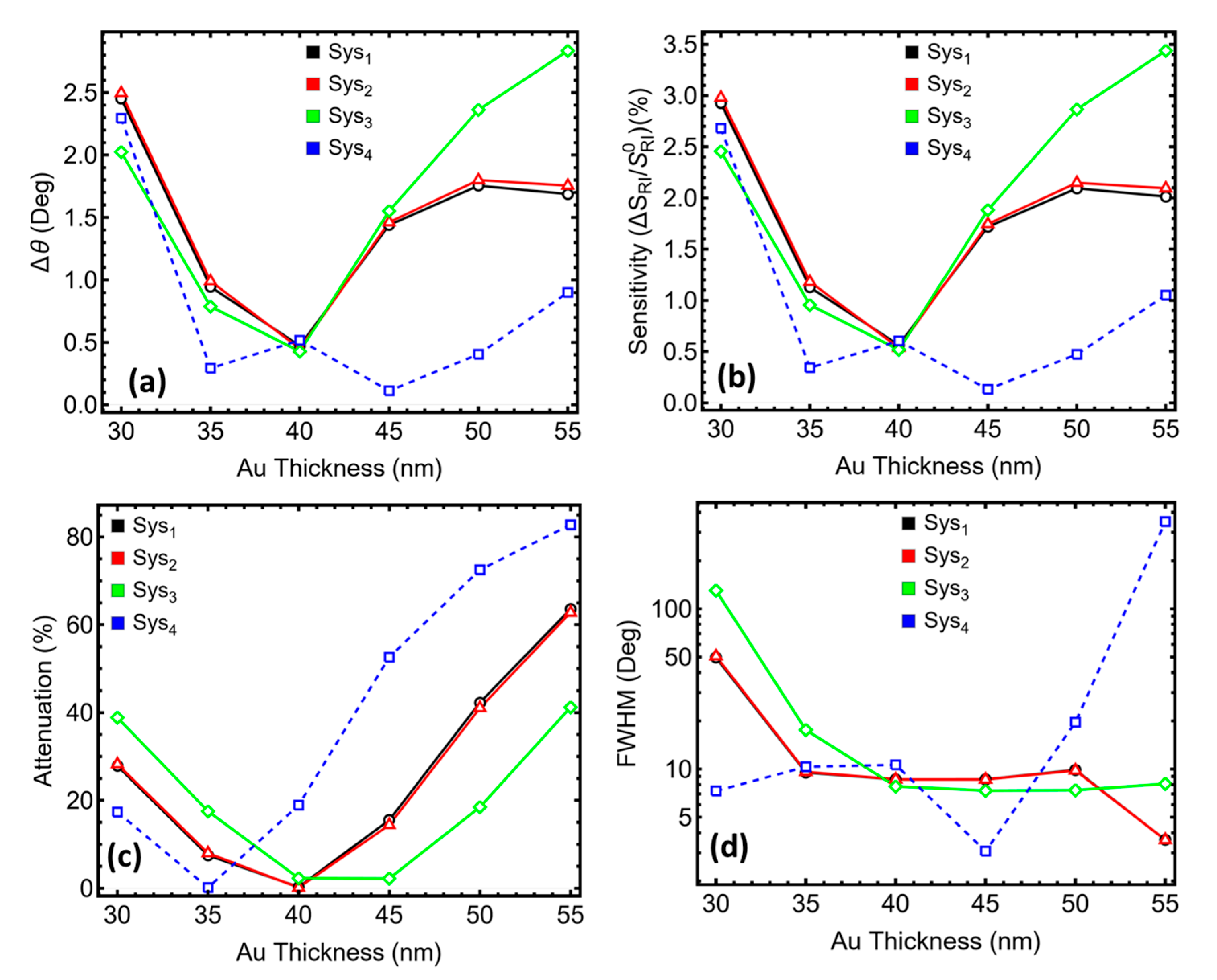 | Sys No. | Code | SPR Peak Position | Sensitivity Enhancement (%) | (Deg) | Attenuation (%) | FWHM |