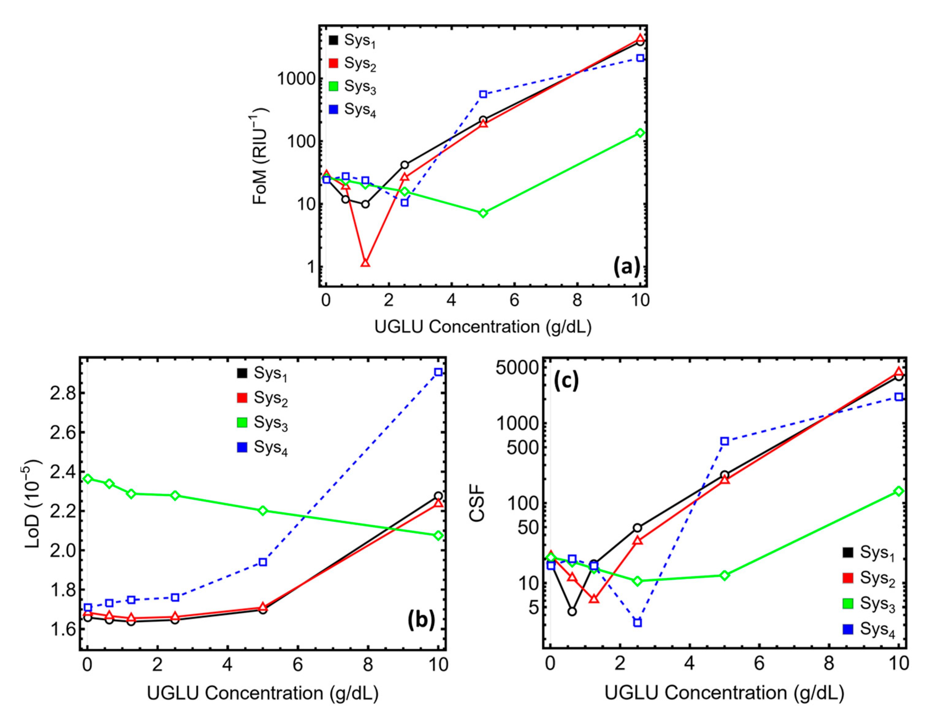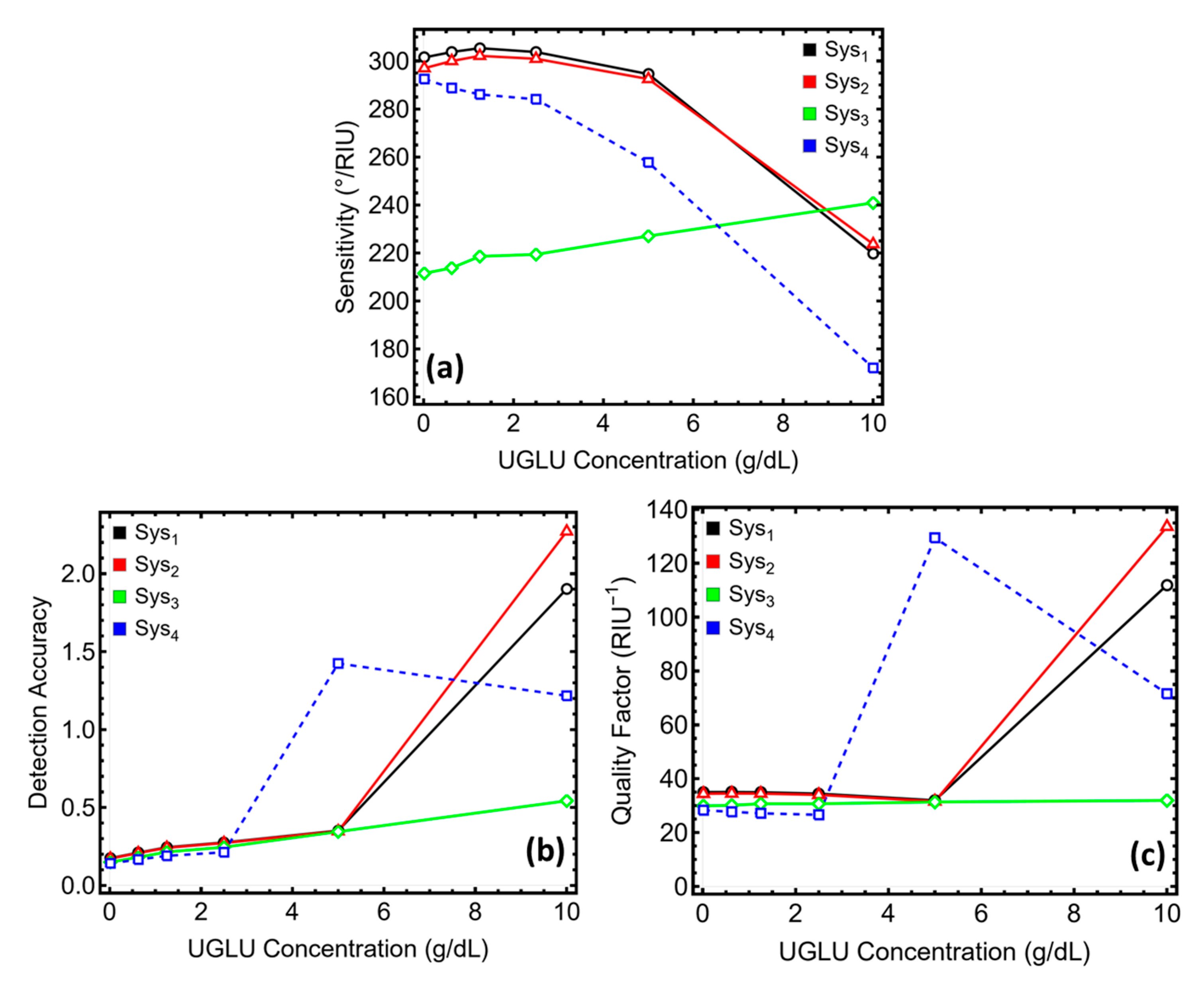 | Ref. | Structure | Conc. g dL−1 | Sensitivity (°/RIU) | QF | DA |