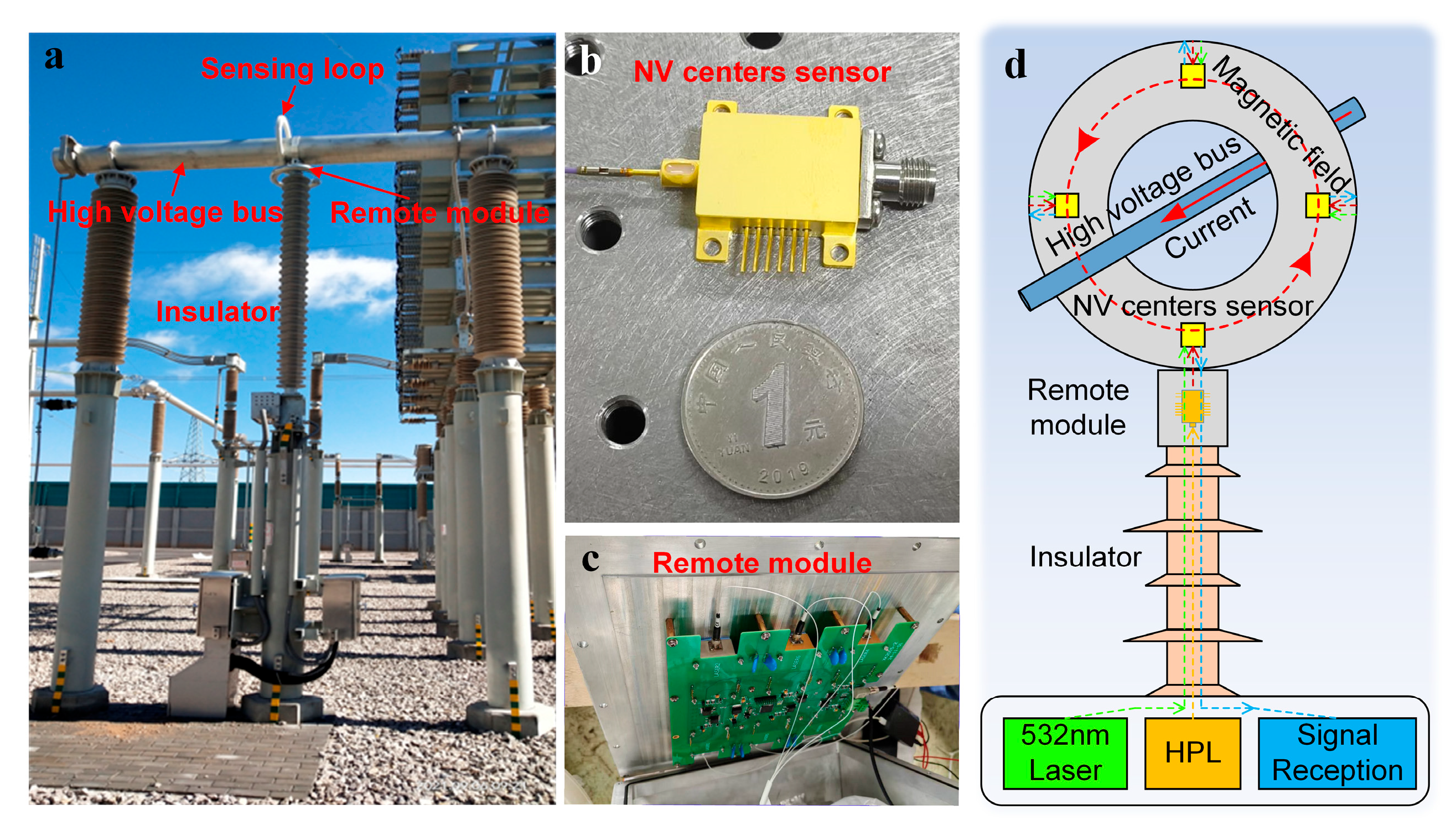 Zhan L, Guan C, Dong C, Fan X, Guo Q, Wang W, Xiao Y, Chen X, Huang J, Zhang X, et al. Ultra-High Voltage NV Center Magnetic Sensing System Based on Power over Fiber. Photonics. 2025; 12(11):1093. https://doi.org/10.3390/photonics12111093