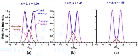 Here, n is the order of skewness, and s and bw are the skewness parameter and the beam width []. Radial intensity profiles and fitting curves are shown on the lower row of Figure 2 by pink and blue, respectively, where the coefficient of determination is as high as R2 0.98.