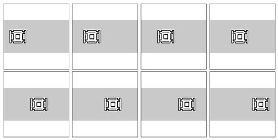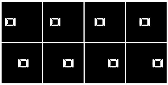 To verify the performance of the machine vision system proposed in this paper, we generated multiple images, assuming a situation where an arbitrary object is being transported on a conveyor belt, as shown in Figure 4. The generated images were used to optimize the next step, the object extraction algorithm. In the case of images acquired by an actual machine vision system, optical distortion occurs due to the optical system and camera. In optical systems with a wide FOV, optical distortion increases the farther away the image is from the machine vision system’s optical axis. Therefore, to prevent this distortion, it is important to configure the system so that the object is captured as close to the center of the camera as possible. This is a key consideration when configuring the simulation setup in Chapter 4. In addition, the lighting conditions were not taken into consideration for the generated images. Since changes in lighting conditions are a very important parameter for FP high-resolution image reconstruction, they will be discussed separately in Chapter 3.3: FP high-resolution image reconstruction stage.