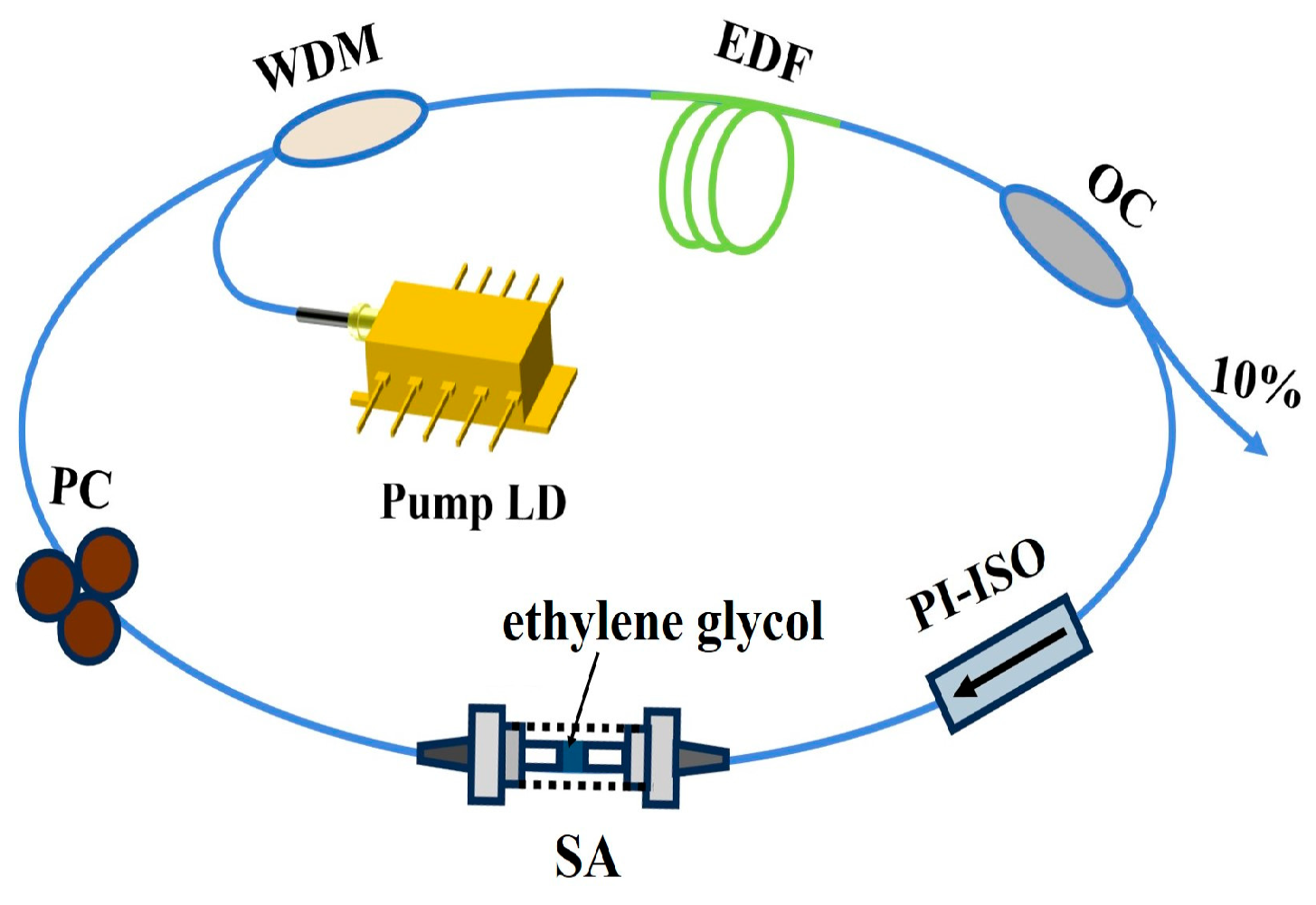 - Zhang, W.Y.; Jiang, H.J.; Zheng, L.; Liu, N.N.; Zhang, X.D.; Yang, K.; Zhan, L. Passively mode-locked fiber laser based on ethylene glycol. Results Phys. 2024, 60, 107670. [Google Scholar] [CrossRef]