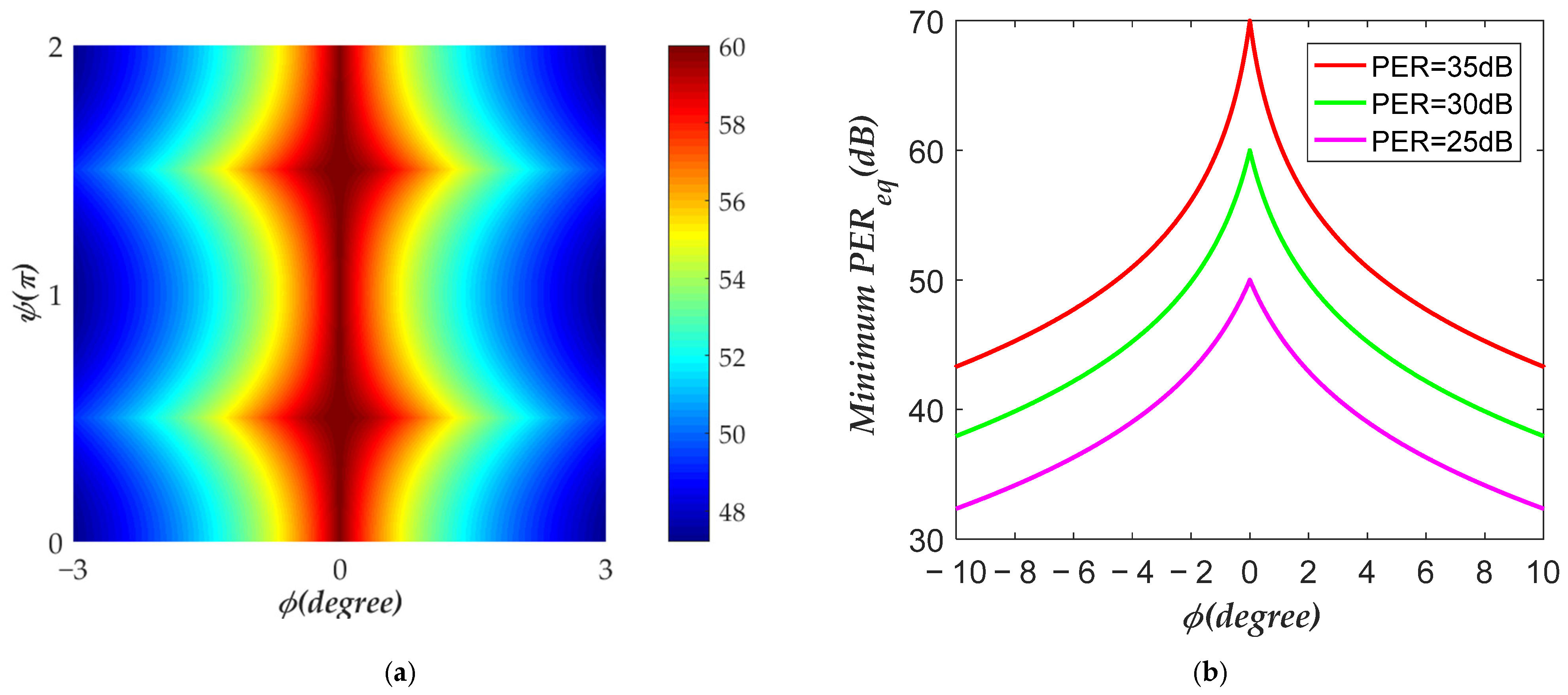 It is important to clarify the assumptions made in this model. The model is not entirely idealized, as it explicitly incorporates the finite polarization extinction ratio of the polarizing beam splitters (PER_PBS) within their Jones matrices (Equations (11) and (12)). However, to maintain a tractable model, secondary effects such as cross-polarization and crosstalk in the beam splitters, as well as optical leakage between the coupler ports, have been omitted. While these non-ideal effects are considered minor, they likely contribute to the observed discrepancies between the simulation results and the experimental data.