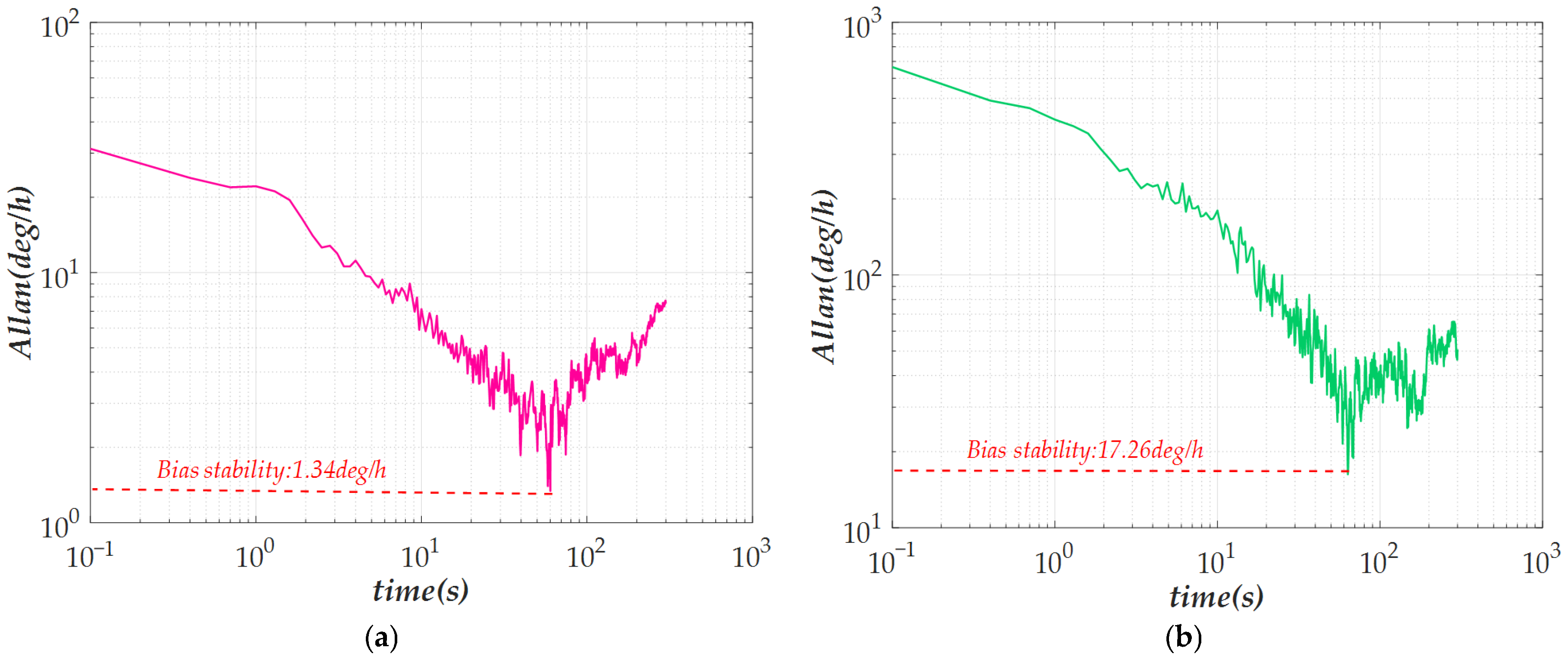 is 5.9. Furthermore, the Allan deviation is analyzed based on 1200 s gyros precision tests. As shown in