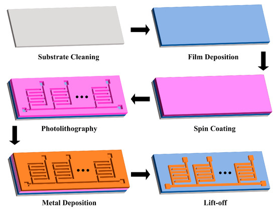 Linear photodetector arrays were fabricated on the hBN films using a standard photolithography process followed by electron-beam deposition, as shown in Figure 1. Nickel (Ni) was chosen as the electrode material, with an 80 nm-thick layer precisely deposited. Each unit within the arrays consists of interdigitated electrodes with a finger width and spacing of 30 μm.