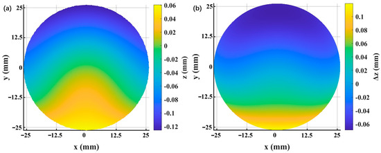 The surface sag (a) and the residual surface sag (b) of the freeform lens L9.