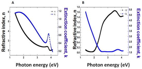 In Figure 7A, the estimated dispersion laws of the GO sample deposited with the dip-coating technique on magnetron-sputtered Ag/glass substrate by ellipsometry characterization are reported in the [1.3–4.1] eV photon energy range.