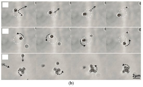 Plasmonic and optical spanner. (a) Schematic of the spanner setup and its conceptually operational principles, capable of stably trapping and dynamically rotating particles. (b) Video recordings illustrating the movement of gold particles in the OV field (top two rows) and in the PV field (bottom row). The black arrows denote motion direction of particles. Reprinted from [87]. Copyright © 2015, The Author(s). Creative Commons Attribution 4.0 International License.