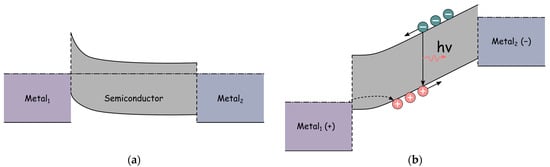 Mechanism of Schottky LED operation without (a) and with (b) bias (adapted from [34]).