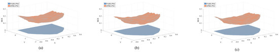The BER performance of PABS-PNC and EPBS−PNC in the placeable region at different SNR. (a) SNR = 20; (b) SNR = 25; (c) SNR = 30.