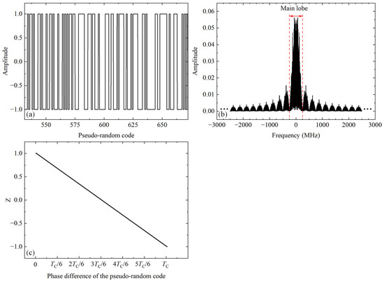 where denotes the real part of the complex number , is the phase difference of the pseudo-random code, is the spectral density of the pseudo-random code, and is the signal power. When the bandwidth of the pseudo-random code is finite, its correlation function is [23]