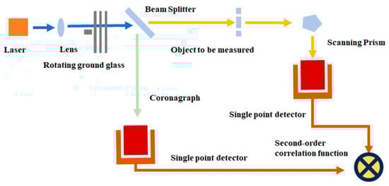 In 1995, Pittman et al. [41] experimentally demonstrated two-photon imaging, reconstructing the two-dimensional intensity information of a target by correlating measurements from the signal and reference optical paths. In 2005, Valencia et al. [42] achieved two-photon imaging using thermal light generated by a pseudo-thermal source, as shown in Figure 3. Later, in 2008, Shapiro et al. [43] introduced lensless computational ghost imaging, which eliminated the need for the reference light path traditionally required in two-beam systems.
