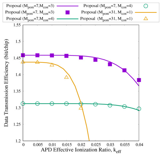 Data transmission efficiency as a function of the APD effective ionization ratio, .