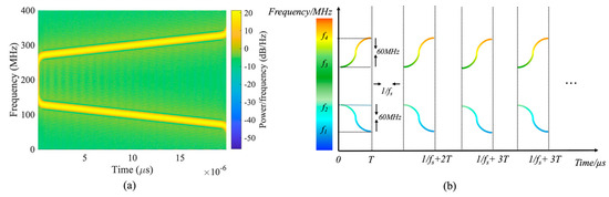 (a) Single pulse with positive and negative chirp sweep signals; (b) schematic diagram of frequency division multiplexing.