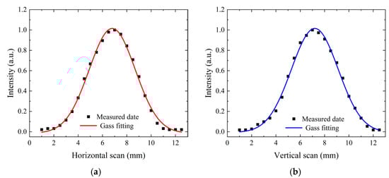 20]. The spot radius of output beam was achieved by fitting the measured data. Consequently, the measured spot radii in both the horizontal and vertical directions were approximately 3.8 mm.