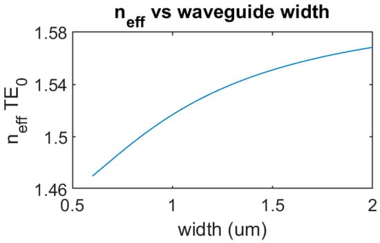 Calculated effective refractive index of the TE0 mode varying the waveguide width.