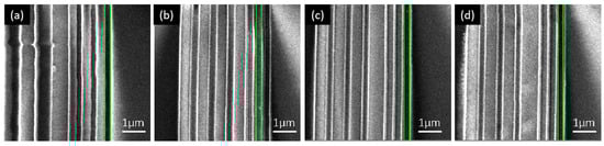 - Mao, Q.Y.; Zhu, J.Y.; Wang, Z.S. Quantitative evaluation of residual resist in electron beam lithography based on scanning electron microscopy imaging and thresholding segmentation algorithm. Nanotechnology 2025, 36, 045301. [Google Scholar] [CrossRef]