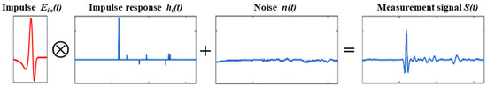 The measured signal S(t) can be expressed as the convolution of the incident terahertz signal Ein(t) with the impulse response function h(t), which encapsulates the material’s properties, combined with random noise n(t). The composition diagram is shown in Figure 4 and the equation is as follows: