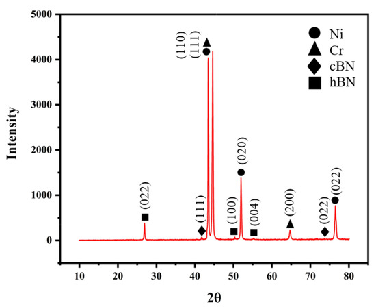 XRD pattern of Ni, Cr, hBN, and cBN mixed powders before laser cladding.