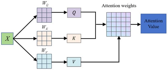 In the attention mechanism, the query represents the focus of the current task, the key represents the identity of the input information, and the value represents the actual content. Through the application of linear transformations to the input sequence, X, the query, key, and value vectors can be obtained, respectively: