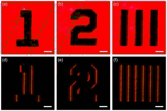 The objects imaged above belong to amplitude objects. However, the proposed scheme also works for pure phase objects. To demonstrate this, we replaced the previous amplitude target with a pure phase object etched with 200 nm patterns. Similarly, bright-field images were obtained when the polarization axes of P1 and P2 were parallel, as shown in Figure 4a–c. In a bright field, phase objects are almost invisible due to their extremely low contrast. In the dark field (where P2 and P1 were orthogonal), the contour of the phase object was presented with high contrast, as demonstrated in Figure 4d–f. Therefore, optical spatial differentiation provides an effective imaging solution for transparent samples. The reason spatial differentiation can achieve edge detection is that phase gradients often appear at the edges of objects [8].
