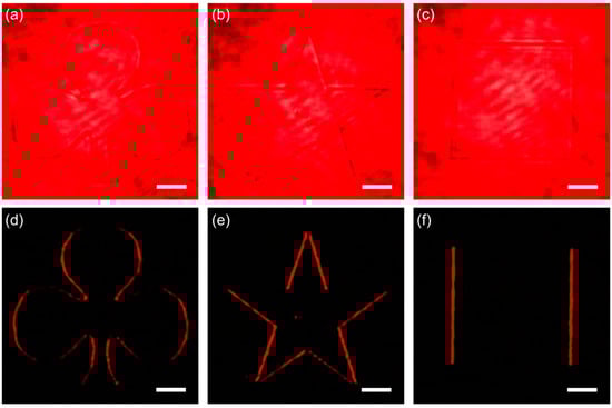 Edge detection of different phase targets. (a–c) Bright-field images acquired under parallel polarizer configuration. (d–f) Corresponding edge-enhanced images obtained with orthogonal polarizers. Scale bar: 200 μm.