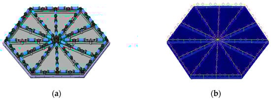 Following the aforementioned optimization outcomes, the arrangement of actuators has been refined. In the parametric model depicted below, the highlighted areas indicate the positions of the actuators. The total number of actuators, the number of edge actuators, the number of actuators on the vertex radial ribs, and the number of actuators on the midpoint radial ribs are defined in the format of “a_b-c-d”. The specific optimization results are shown in Figure 9.