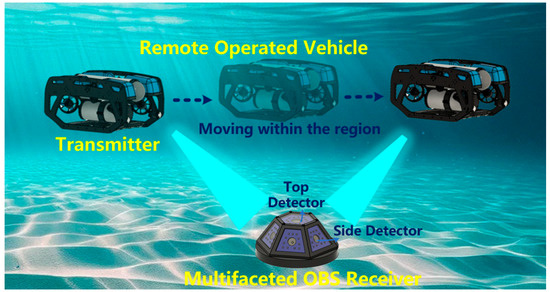 Application scenario diagram of underwater multi-faceted OBS communication receiver.