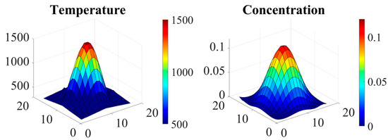 where Q is the total number of grid cells, Ttrue and Ctrue represent the simulated temperature and concentration values, and Tcal and Ccal are the corresponding reconstructed values.