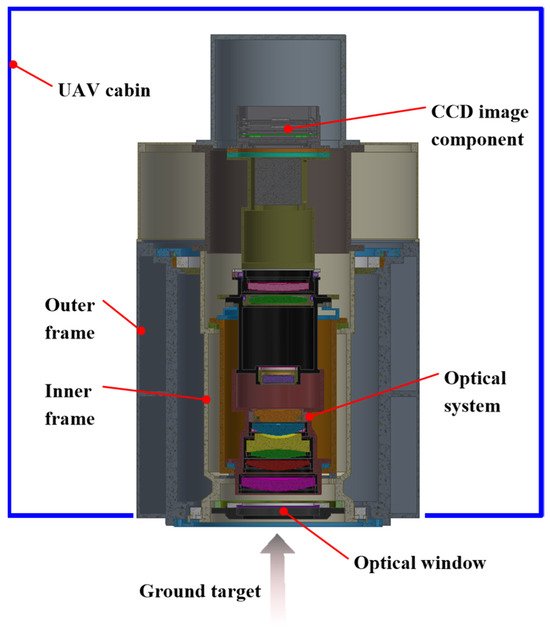 The aerial camera is mounted on an unmanned aerial vehicle (UAV), with its optical window directed vertically towards the ground target, as shown in Figure 1. The exterior surface of the optical window is in direct contact with the external environment. The thermal environment conditions and thermal control requirements are outlined in Table 1.